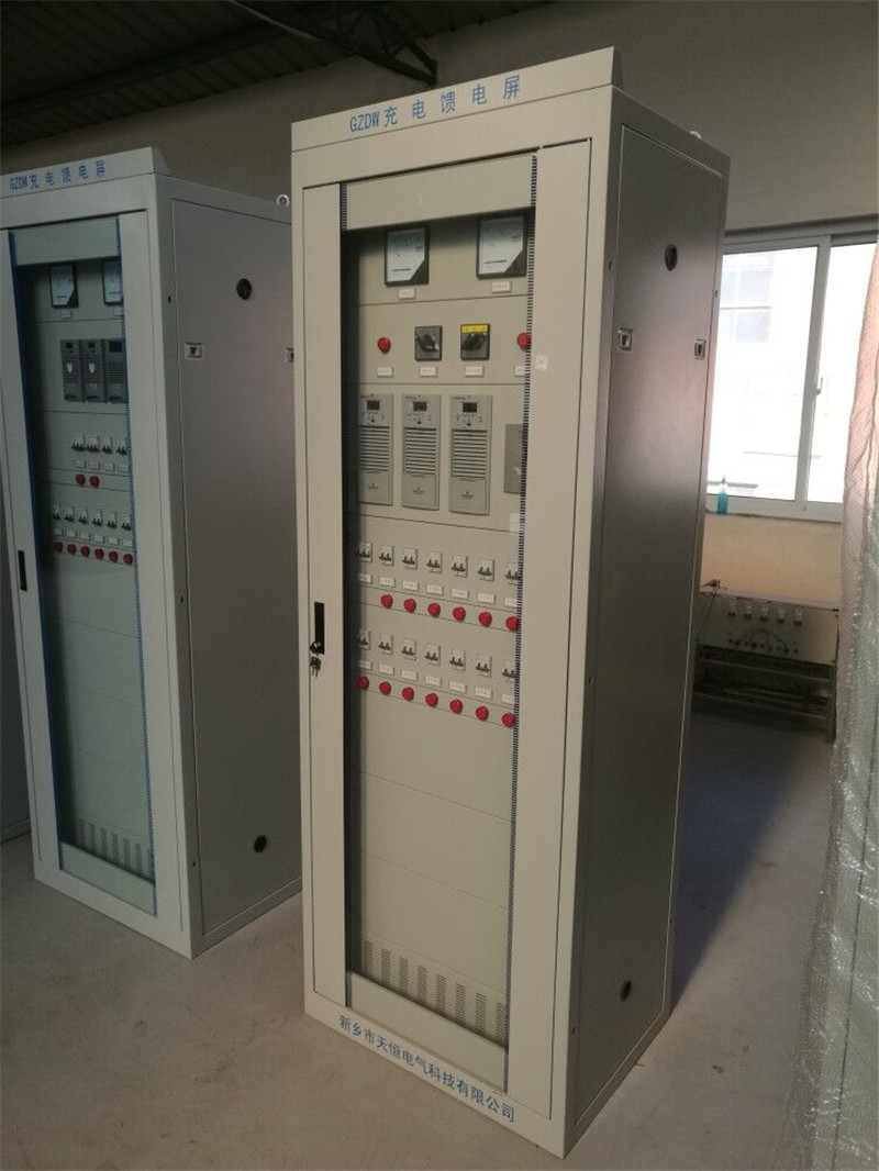 產品介紹:概述   GZDW系列高頻開關直流電源是為各種合閘開關及繼電保護裝置提供直流操作電源和作為電站控制及信號用直流電源的專用設備,廣泛應用于各類大中小型發電廠、變電站(所)、電氣化鐵路、大中型建筑及工礦企事業單位變電所、配電室以及緊急照明需要直流電源的場所。系統特點   ● 兩路交流輸入;  ●由多個獨立模塊組成,N+1備份;  ● 采用智能化管理,自主完成充電、均充電、浮充電的全部功能,并自動對蓄電池進行溫度補償,有效延長蓄電池的使用壽命;  ● 監控功能完善,高智能化,配有標準通訊接口,實現四遙功能;  ● 可選擇配置絕緣檢測儀、單只電池電壓巡檢功能;  ● 系統可以擴展其它附加功能:增加逆變器實現交流配電輸出、增加DC/DC直流轉換模塊實現DC48V(24V)輸出。GZDW系列高頻開關直流電源主要技術參數表  備注:  1、本表按220V 系統列出,對于110V系統,可按要求設計?! ?、本表供參考,具體以技術協議為準。400AH以上電池一般配置電池架。系統工作原理   電源系統主要由交流配電單元、充電模塊、監控模塊、配電監控、降壓硅鏈(降壓單元)、直流饋電單元(包括合閘分路、控制分路)、絕緣監測、電池巡檢等幾大部分組成。技術指標   輸入電壓:AC 380V ±20% ;  穩壓精度:≦±0.5%  穩流精度:≦±0.5%  紋波系數:﹤±0.5%  轉換效率:≧92%  噪聲:≦55dB(關閉前后門1米處)訂貨須知   請注明型號、屏體尺寸、顏色;  配套的蓄電池容量、數量;  如有特殊要求,可按要求進行設計、加工。